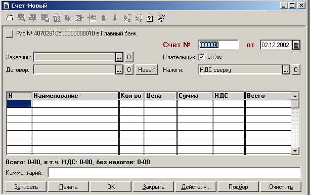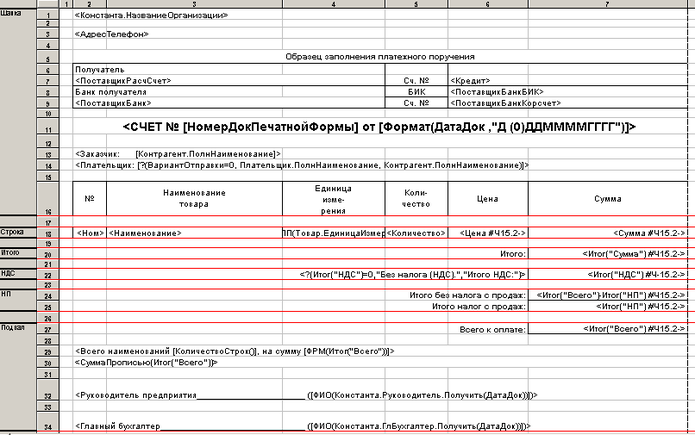 Рассмотрим часть модуля документа «Счет» в программе «1С:Бухгалтерия»