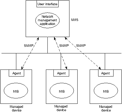 Большинство архитектур управления сети используют одну и ту же базовую структуру и набор взаимоотношений. Конечные станции (managed devices - управляемые устройства), такие как компьютерные системы и другие сетевые устройства, прогоняют программные средства, позволяющие им посылать сигналы тревоги, когда они распознают проблемы. Проблемы распознаются, когда превышен один или более порогов, заданных пользователем. Management entities (управляющие объекты) запрограммированы таким образом, что после получения этих сигналов тревоги они реагируют выполнением одного, нескольких или группы действий, включающих: