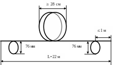 При измерении кабельной длины волны отсечки CСF тестируемый образец волокна должен иметь длину 22 м. Большая часть волокна свертывается и располагается на катушке с радиусом не меньше, чем 140 мм, что моделирует кабельные эффекты. Затем делается по одной петле диаметром 76 мм на расстоянии 1м от каждого конца волокна для моделирования эффекта изгиба волокна в сплайс-боксах, рис. 4.2б. И, наконец, в средней части делаются две дополнительные петли радиусом, меньшим 140 мм.