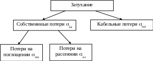 Потери на поглощении и на рассеянии вместе называют собственными потерями, в то время как кабельные потери в силу их природы называют также дополнительными потерями, рис. 4.3.