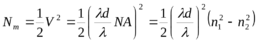 При больших значениях V количество мод Nm для ступенчатого волокна можно оценить по формуле: