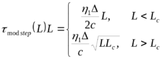 Межмодовая дисперсия возникает вследствие различной скорости распространения у мод, и имеет место только в многомодовом волокне. Для ступенчатого многомодового волокна и градиентного многомодового волокна с параболическим профилем показателя преломления ее можно вычислить соответственно по формулам: