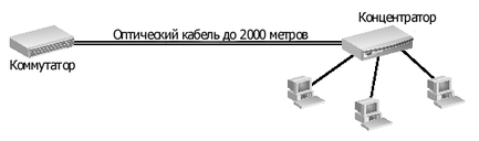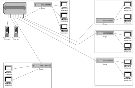 В рабочих группах, располагающихся в цехах по территории предприятия допустимо использование концентраторов, так как в основном все рабочие станции будут работать с выделенными серверами, которые находятся в административном здании, и не будет необходимости локализовывать трафик между станциями рабочих групп.