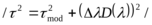 Для волокна со смещенной дисперсией эмпирическая формула временных задержек записывается в виде ()=А+В+Сln, а соответствующая удельная дисперсия определяется как