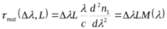Материальная дисперсия обусловлена зависимостью показателя преломления волокна от длины волны. В выражение для дисперсии одномодового волокна входит дифференциальная зависимость показателя преломления от длины волны: