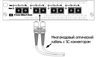 Для соединения концентратора с входящим оптическим кабелем необходим коммутирующий модуль HP AdvanceStack 100Base-FX Switch Port Module (J3248A) (Рис. 2.6).