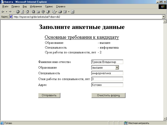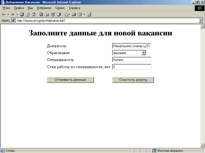 “Отправить данные" - запускает скрипт Dob.cgi и передает в него данные новой вакансии;