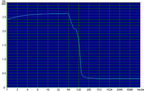 Чтобы проиллюстрировать все вышесказанное приведу графики, показывающие скорость записи в память блоков данных различного размера для процессоров AMD Duron 650:
