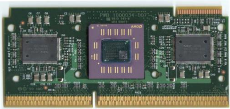 Работает в специальных материнских платах с процессорным разъемом Slot A