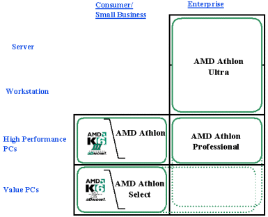 Благодаря возможности варьировать размеры и скорости кеша второго уровня AMD собирается выпускать четыре семейства процессоров Athlon, ориентированных на разные рынки.