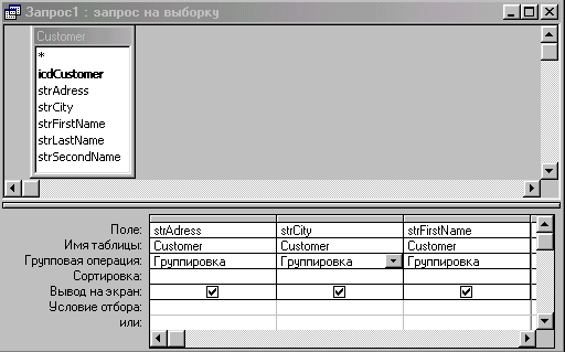 Для введення умов відбору записів використовується рядок Условие отбора і рядок или.