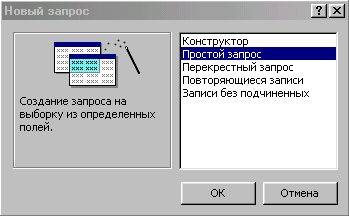 В діалоговому вікні Новый запрос вибрати майстра Простой запрос (мал. 3). Натиснути ОК.