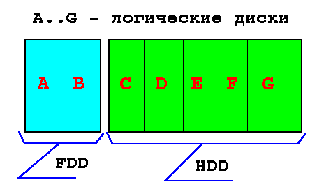 В качестве имени логического диска используется одна из букв латинского алфавита(A..Z).