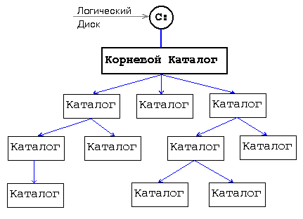 MS DOS поддерживает иерархическую структуру каталогов(древообразную), см. рис.6.