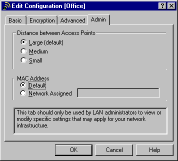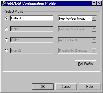 Каждый профиль имеет собственные настройки параметров сети. Для Peer-toPeer Group и Residental Gateway это имя сети (Network Name) и ключ шифрования (Encryption key). Первый определяет группу адаптеров, которые работают совместно - контроллеры видят только таких партнеров, у которых установлено то же имя сети. Это позволяет создавать в одном пространстве несколько непересекающихся сетей. Использование ключа шифрования еще больше повышает секретность.