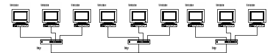 В этом случае выход из строя одного компьютера не оказывает никакого влияния на сеть — остальные компьютеры по-прежнему взаимодействуют друг с другом. А выход из строя концентратора повлечет за собой остановку подключенных к нему компьютеров и концентраторов.