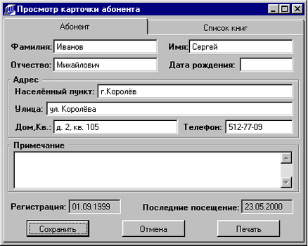 Рис. 4.23 Главная форма модуля картотеки читателей