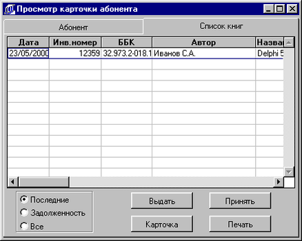 В качестве элементов фильтра используется уникальный код читателя таблицы Abonents.