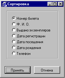 На рисунке 4.28 показана форма для задания порядка отображения записей в списке карточек читателей. Для задания порядка отображения в списке читателей доступны следующие параметры: