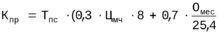 Кпр = 254*(0,3*11,9*8 + 0,7*1,356*2000/25,4)=26238 руб.