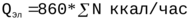 QЭл = 860*1,01 = 868,6 ккал/час.