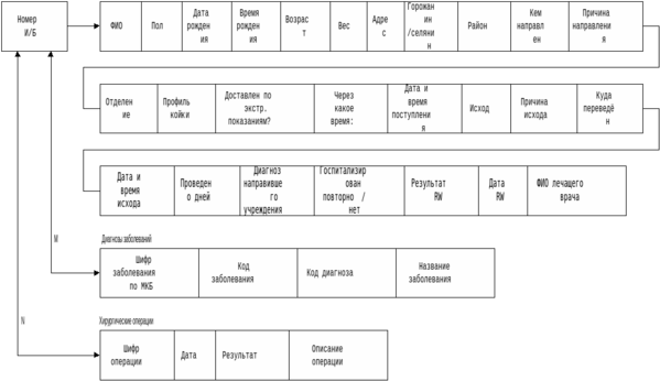 Для хранения информации по выбывшим больным была разработана БД, концептуальная модель которой представлена на рис.2.