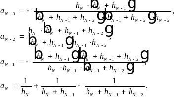 2. Spline( ) - этот модуль составляет систему линейных алгебраических наклонов относительно наклонов сплайна mi по формулам 1.2, 1.2.а, с учетом краевых условий 1.3, 1.5, 1.3.а, 1.5.а и 1.4, 1.4.а или