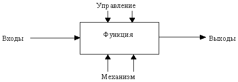 Результатом применения методологии SADT является модель, которая состоит из диаграмм, фрагментов текстов и глоссария, имеющих ссылки друг на друга. Диаграммы - главные компоненты модели, все функции ИС и интерфейсы на них представлены как блоки и дуги. Место соединения дуги с блоком определяет тип интерфейса. Управляющая информация входит в блок сверху, в то время как информация, которая подвергается обработке, показана с левой стороны блока, а результаты выхода показаны с правой стороны. Механизм (человек или автоматизированная система), который осуществляет операцию, представляется дугой, входящей в блок снизу (рисунок 2.1).