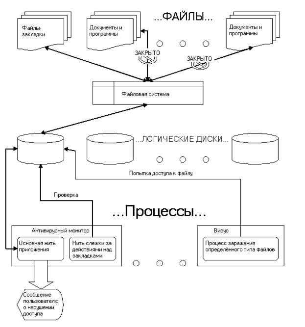 Программа антивирусного монитора – это *.exe файл для Windows, поэтому запуск его на выполнение порождает в системе процесс и он естественно должен фиксироваться в списке процессов Windows [6]. Но это обстоятельство делает программу очень уязвимой в плане того, что её можно снять с выполнения. Для этого в программе предусмотрен способ обхода системной регистрации процесса и другой пользователь не в силах снять этот процесс не прибегая к сторонним разработкам.