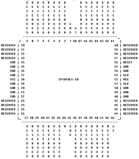 Данная программируемая интегральная логическая схема (ПЛИС) состоит из 68 выводов.