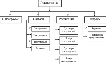 В соответствии с функциями объекта, структуру экранных форм можно представить следующим образом: