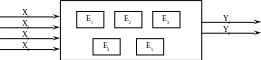 Между компонентами выходных векторов Yj и компонентами информационных элементов Еi должно быть соответствие, которое можно сформулировать следующим образом: множество элементов еk, принадлежащих информационным элементам Еi должно быть достаточным для получения множества элементов уm векторов Yi. Например: