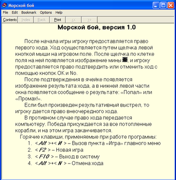 Если в процессе игры пользователю необходимо обратиться к правилам, то с помощью пункта «Помощь» главного меню можно вызвать подпункт «Правила игры». В результате появится окно справки, показанное на рис.6.