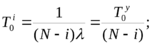 Переход из одного состояния в другое (по мере постепенной деградации системы) определяется интенсивностью потока отказов, воздействующих на систему, находящуюся в соответствующем состоянии. Интенсивность потока отказов, воздействующих на систему, находящуюся в i-м состоянии, определяется количеством работоспособных узлов (N-i). Т.о. среднее время нахождения системы в i-м состоянии определяется следующим образом: