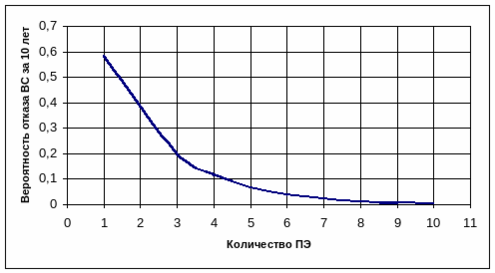 Рис 2.11. Вероятность отказа ВС типа N(N-1) за 10 лет.