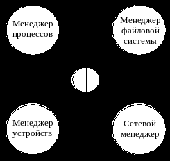 1. управление взаимодействием частей системы (например, менеджеров процессов и файлов),