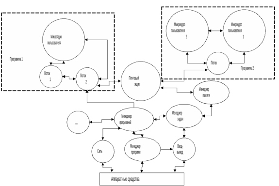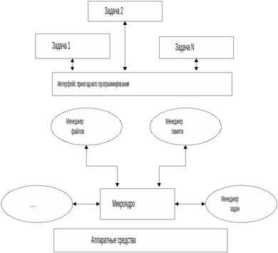Операционная система QNX канадской компании QNX Software System Ltd. построена на основе иерархической микроядерной архитектуры. Упрощенная структурная схема этой ОС приведена на рисунке 1.5.