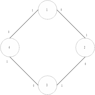 Приведем пример таблиц рассылки. Для наглядности возьмем сеть из четырех ПЭ, представленную на рисунке 2.1.