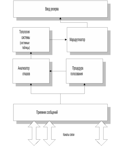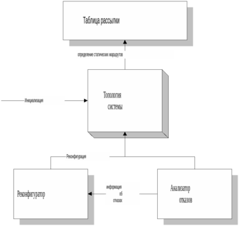 Реконфигуратор тесно связан с модулем маршрутизации и обращается к нему сразу после изменения системных таблиц для коррекции таблиц рассылки и определения активных элементов системы. Обобщенная модель реконфигуратора может быть представлена на следующей схеме: