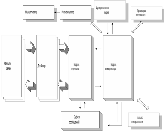 Основной задачей этого модуля является организация информационного обмена между процессами в системе, то есть передача информационных сообщений между функциональными задачами и системных сообщений между операционными системами разных ПЭ.
