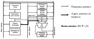 Основным способом доступа к данным является прямое (непосредственное) обращение к РОН. На рис. 2.12 операнд команды содержится в регистре Rd, а КОП обозначает часть слова команды, соответствующую Коду ОПерации, Обычно в формате команды отводиться пять бит, которые позволяют адресоваться к любому регистру.