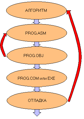 Разработка программы на Ассемблере состоит из следующих этапов: