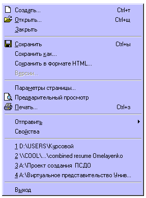 Рисунок 2. 6 – Меню «Файл» Word'a