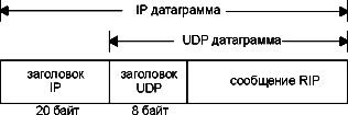 Инкапсуляция RIP сообщения в UDP датаграмму.