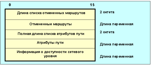 | 2 | Отклик, содержащий информацию о расстояниях из маршрутной таблицы отправителя; |