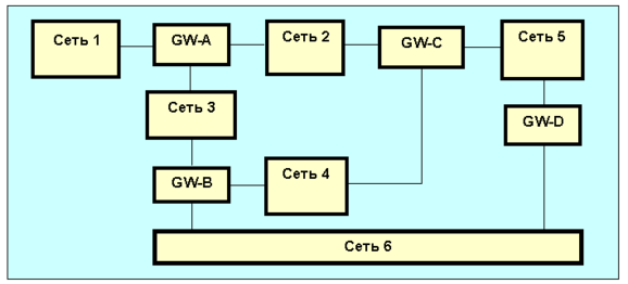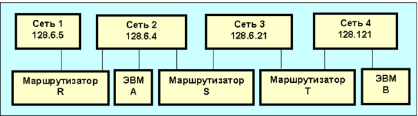 Пример маршрутизаторов и сетей.