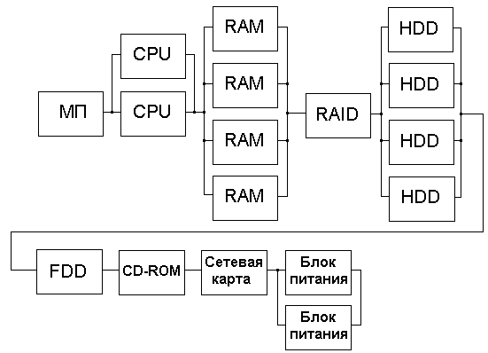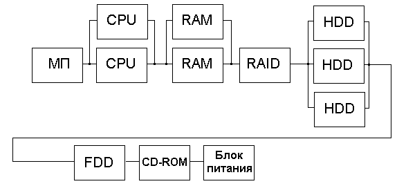 Исходя из этих значений, можно подсчитать суммарную интенсивность отказов всех устройств одного типа, а затем и для всех устройств сервера.