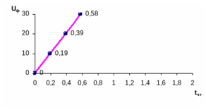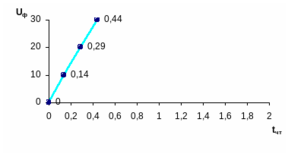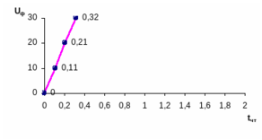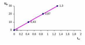 Расчитаем быстродействие чтения и записи файла разного размера HDD.Для винчестеров Barracuda скорость чтения Vчт=23Мб/с, скорость записи Vзап=17Мб/c. Расчитаем, за какое время HDD прочитает и запишет фаил размером Uф 10Мб, 20Мб, 30Мб, и построим графики быстродействия (график 1, график 2). Для 1 конфигурации: