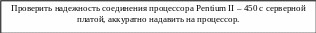 | Нет контакта процессора Pentium II – 450 с серверной платой Intel L-440GXH+ | Проверить надежность соединения. |