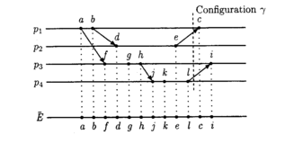В этом подразделе показывается, что события исполнения могут быть переупорядочены в любом порядке, согласующимся с каузальным порядком, без воздействия на результат исполнения. Это переупорядочивание событий вызывает другую последовательность конфигураций, но это исполнение будет рассматриваться как эквивалент исходного исполнения.